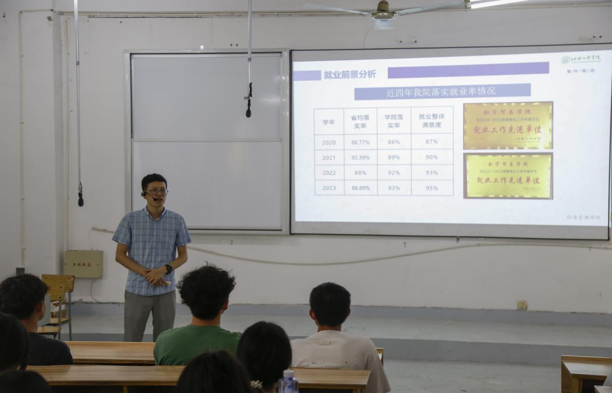 讲座上,谭经理首先回顾了近四年来公司员工的就业落实情况。他自豪地表示,得益于公司对就业工作的高度重视和一系列有效措施的实施,公司毕业生就业率持续保持在较高水平,且就业质量稳步提升。公司不仅积极与企业建立合作关系,为员工提供丰富的实习和就业机会,还注重培养员工的实践能力和职业素养,使他们在就业市场上更具竞争力。