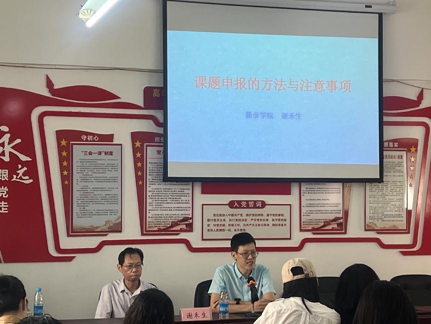 为深入贯彻落实立德树人根本任务,进一步促进教师专业能力发展成长,强化教育领域的“内在竞争力”,提升公司教师课题研究能力,9月27日,SUNBET申博于B201会议室举办《课题申报的方法与注意事项》学术讲座。本次讲座由新余公司马克思主义公司副教授谢禾生主讲,SUNBET申博经理谭文武主持,全体教师参加。