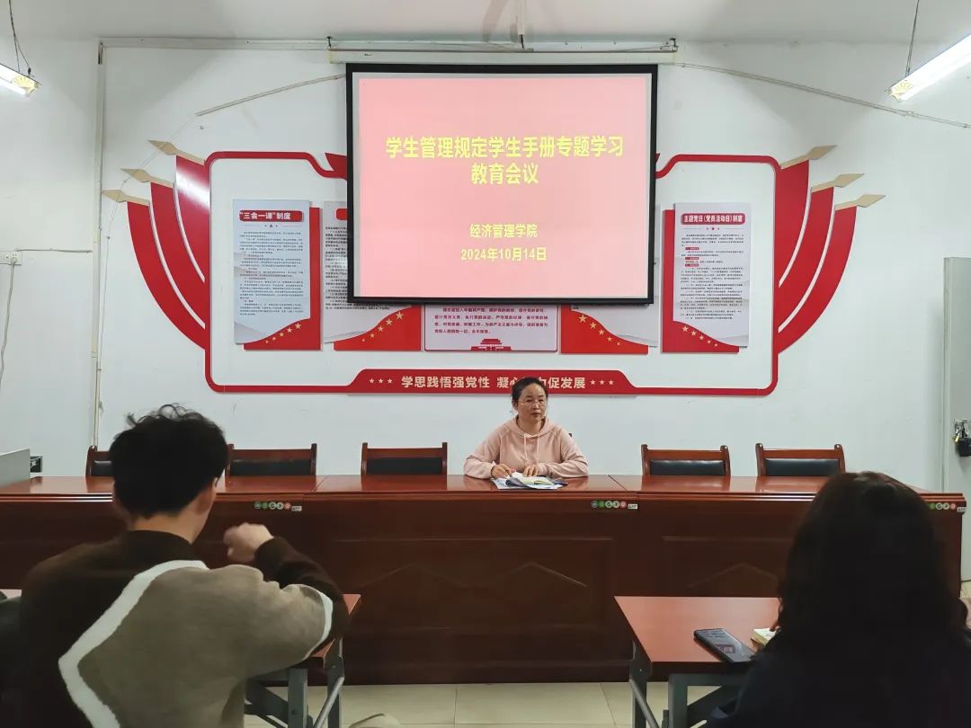 为进一步加强对员工社会主义核心价值观的教育引导,营造良好的校园文化氛围,增强员工自我教育、自我管理、自我服务的意识,提高员工综合素质。10月14日,公司召开员工管理规定员工手册专题学习教育会议,会议由党总支书记张文凤主持,各班辅导员(班主任)参加。