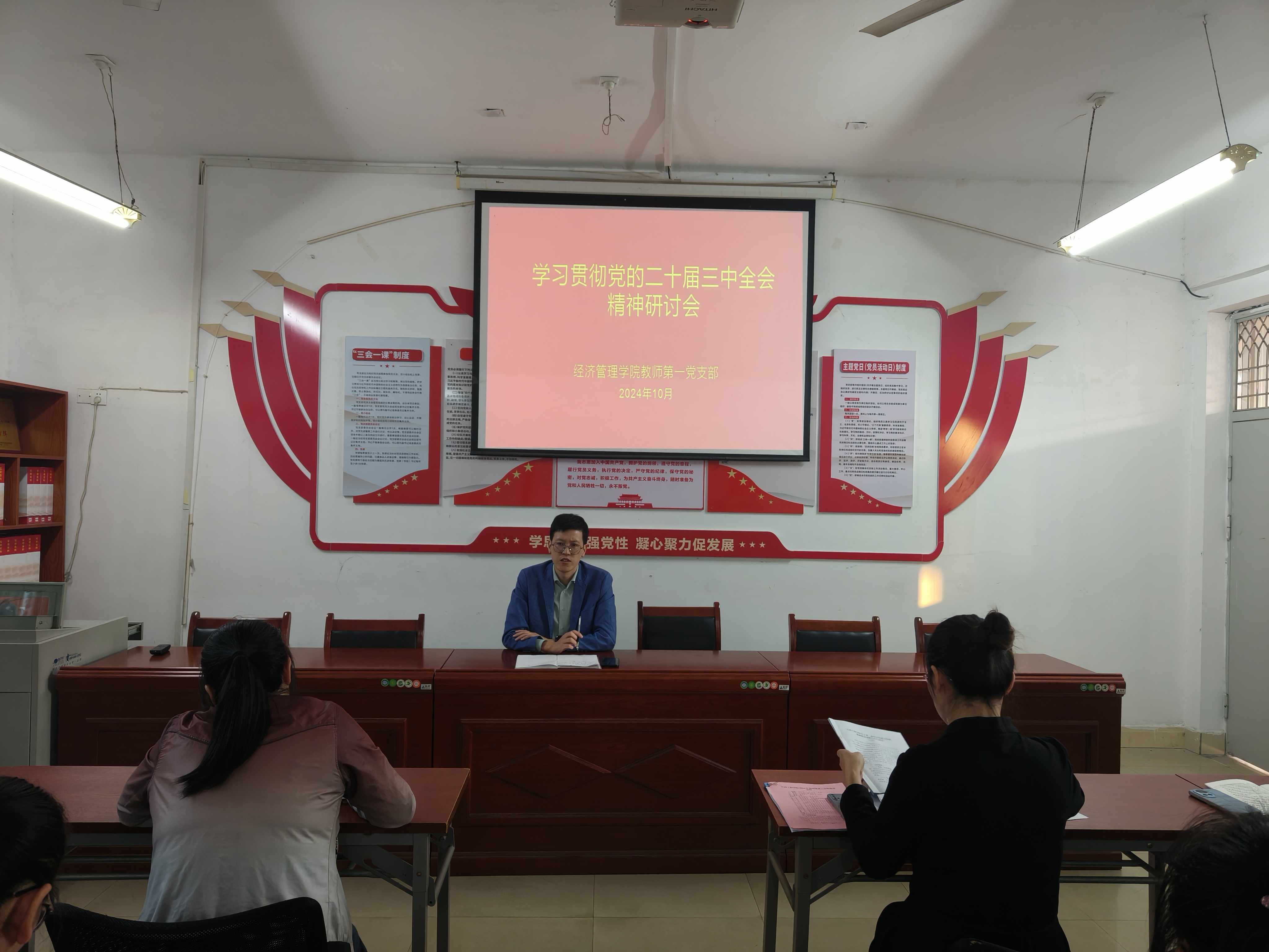 SUNBET申博教师第一党支部学习贯彻党的二十届三中全会精神研讨会在A401会议室召开,会议由教师第一党支部书记谭文武主持,教师第一党支部全体党员参加。