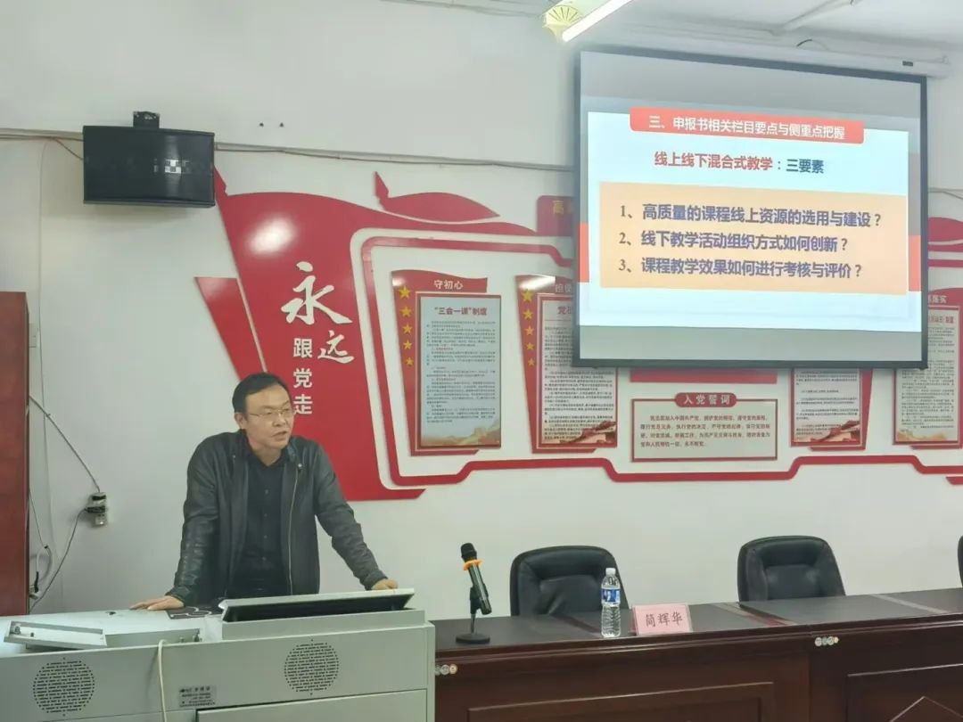 会上,简辉华教授的讲解深入浅出,条理清晰,逻辑严密。他先是讲述了五类一流课程申报的政策背景,提出了一流课程中的线下课程和混合式课程建设的问题导向思维。随后,他对国家一流课程申报突出问题进行了分析,他建议教师要根据公司办学定位和人才培养目标,建设适应公司人才培养需要的一流课程,并体现出公司的特色。同时,要充分认识开展校企合作一流本科课程建设的重要意义,认真组织、提前谋划、统筹申报,通过一流课程建设来推进专业内涵建设,力争在一流课程建设方面取得突破,并由此对申报书相关栏目要点与侧重点把握进行了阐述说明。在交流过程中,他还对如何规划设计混合式教学?针对这个问题,我们进行了深刻的讲解,并指出了如何体现一流课程建设特色及差异化课程建设的方法。最后对如何做好校企合作一流课程申报进行了讲解并展示了案例,讲座取得了良好效果。