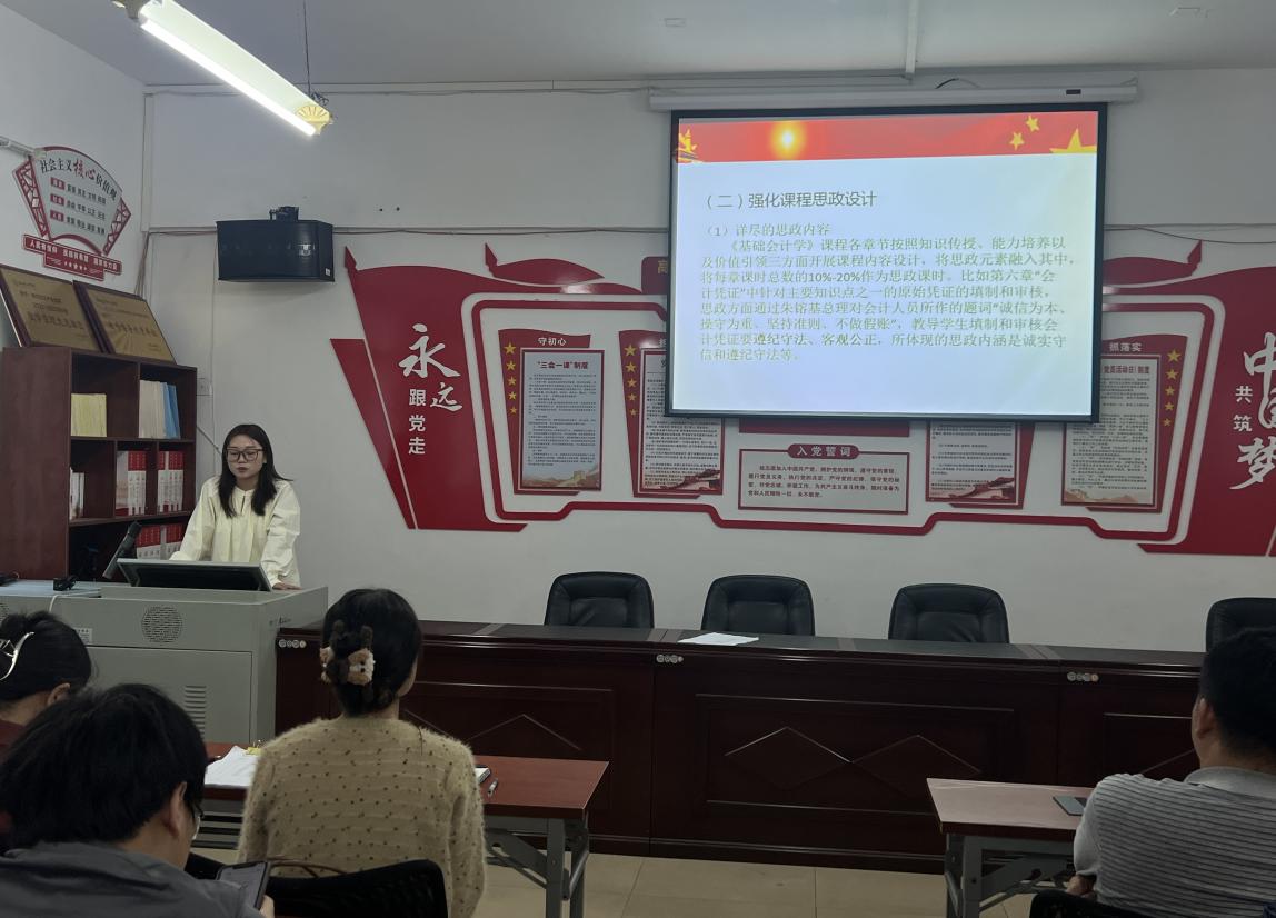 金美玲老师则从“为什么要做好课程思政”的角度出发,分享了自己的见解。并以《基础会计学》为例,详细介绍了课程思政设计的思路和方法。刘鑫雨老师则聚焦于“课程思政的目的”,强调了思政课程在培养员工主动性、积极心态和设定可实现目标方面的重要性。