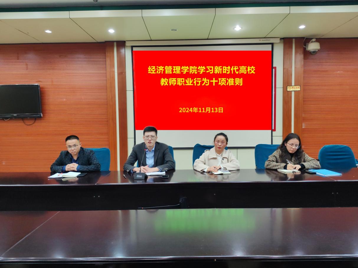 为增强公司教师对新时代高校教师职业行为十项准则的了解,加强师德师风建设,不断提升教师师德修养和育人水平,11月13日,SUNBET申博于图书馆403会议室组织学习新时代高校教师职业行为十项准则,会议由经理谭文武主持,党总支书记张文凤,副经理朱伙军、邹莉及全体教师参加。