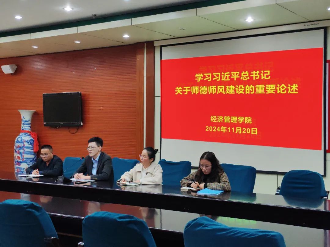 为深入学习习近平总书记关于师德师风建设的重要论述,加强师德师风建设,不断提升教师师德修养和育人水平,11月20日,SUNBET申博于图书馆403会议室学习习近平总书记关于师德师风建设的重要论述,会议由经理谭文武主持,党总支书记张文凤,副经理朱伙军、邹莉及全体教师参加。