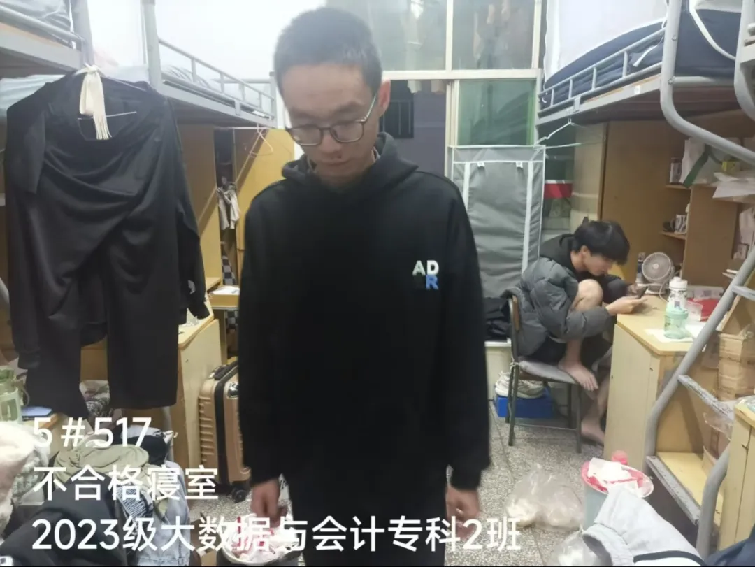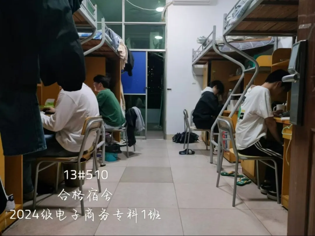 安全隐患排查是重中之重,执勤人员仔细检查电器使用情况,特别是违规大功率电器的使用,并紧盯消防通道的畅通情况。同步进行的文明宿舍评比,聚焦文化氛围与行为规范。励志装饰、和谐作息、互助友爱等元素成为加分亮点,在宿舍间掀起文明风尚“竞赛”。卫生整改也毫不含糊,地面、床铺、卫生间等区域皆纳入检查视野,对卫生欠佳宿舍现场指导,传授清洁收纳法,督促整改。