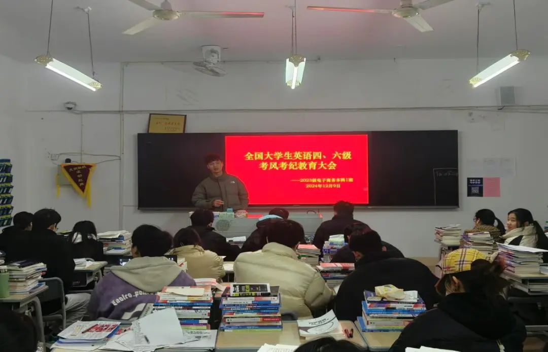 随着英语四六级考试的临近,为强化班级学风建设,营造诚信考试的良好氛围,2024年12月9日,SUNBET申博组织各班级开展英语四六级考风考纪大会。