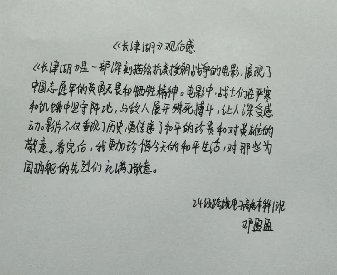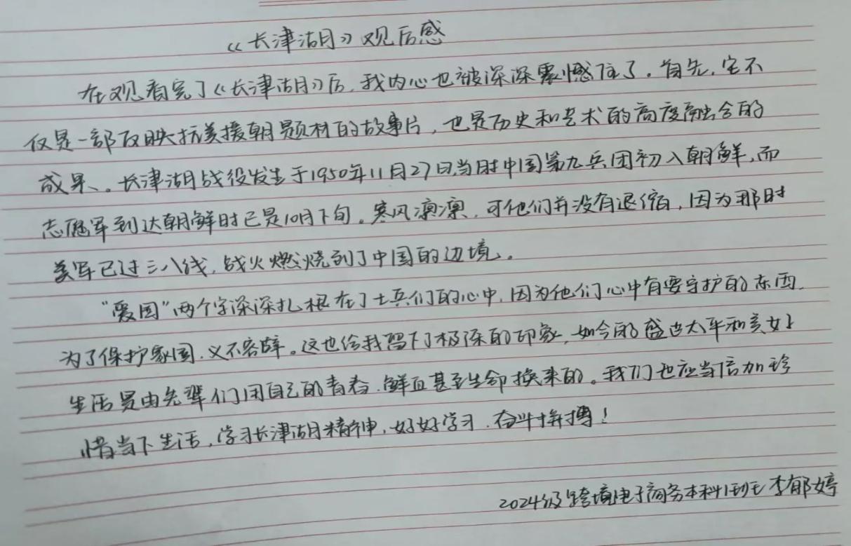 观影结束后,同学们纷纷表示,这次观影活动让他们更加深刻地理解了“抗美援朝,保家卫国”的伟大意义。以下是一些同学的观后感: