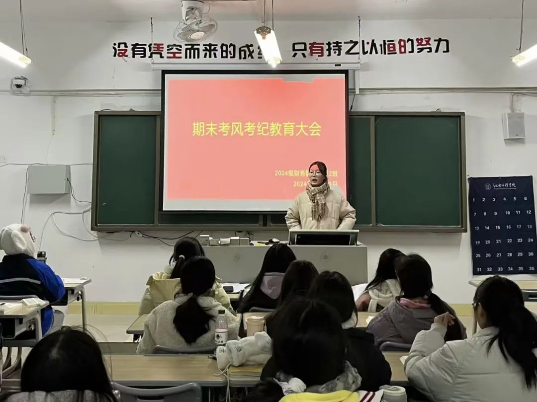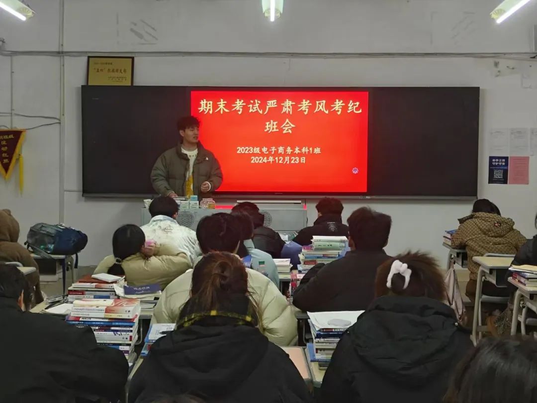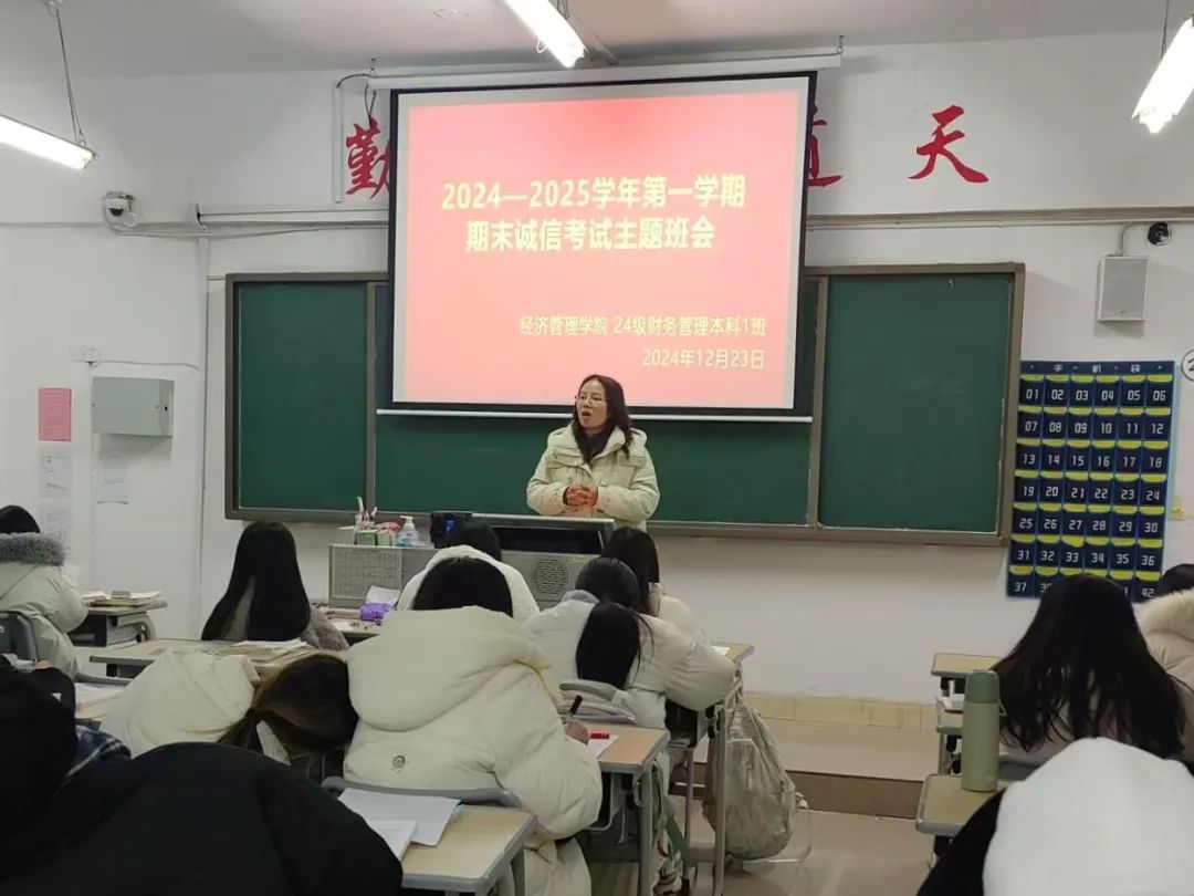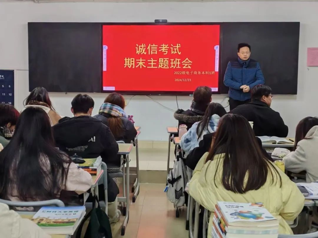 班会上,各班辅导员(班主任)强调同学们要自觉严格地遵守考试纪律,坚决杜绝侥幸心理。不携带与闭卷考试内容相关的书籍、笔记、通讯工具等物品进入考场。在考试过程中,秉持独立思考、自主作答的原则,不抄袭他人答案、不协助他人作弊,更不以任何不正当手段获取分数。以诚信态度完成每一场考试,用实际行动捍卫知识的尊严与考试的公正。明礼诚信是立身处世之本,是走向社会的“通行证”。诚信是道义,更是职责。遵守考纪、诚信应考、是每一位员工应尽的义务。考试作弊不仅仅是自我否定、缺乏自信的表现,更是对诚信品质的践踏,是道德信仰的缺失。同学们不仅需要优异的成绩,更需要真诚的品格和高尚的人格。