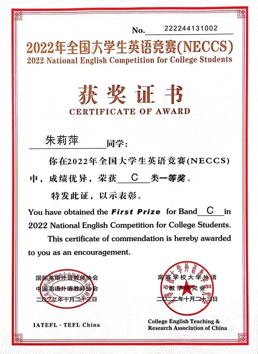 2.2022年10月获得“全国老员工英语竞赛”一等奖