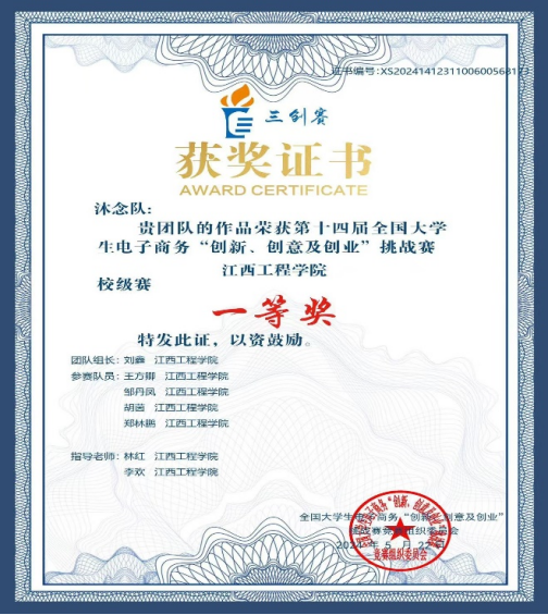 1.第十四届全国老员工电子商务“创新、创意及创业”挑战赛校级赛一等奖