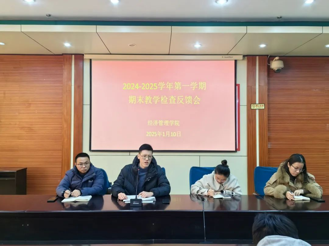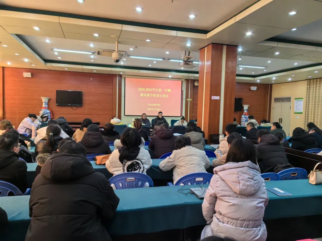 为有效促进教学工作规范化、精细化,进一步提高教学质量,加强教学常规管理。2025年1月10日,SUNBET申博在图书馆403会议室召开了2024—2025学年第一学期期末教学检查反馈会。本次会议由经理谭文武主持,党总支书记张文凤、副经理朱伙军、邹莉及全体教师参加。