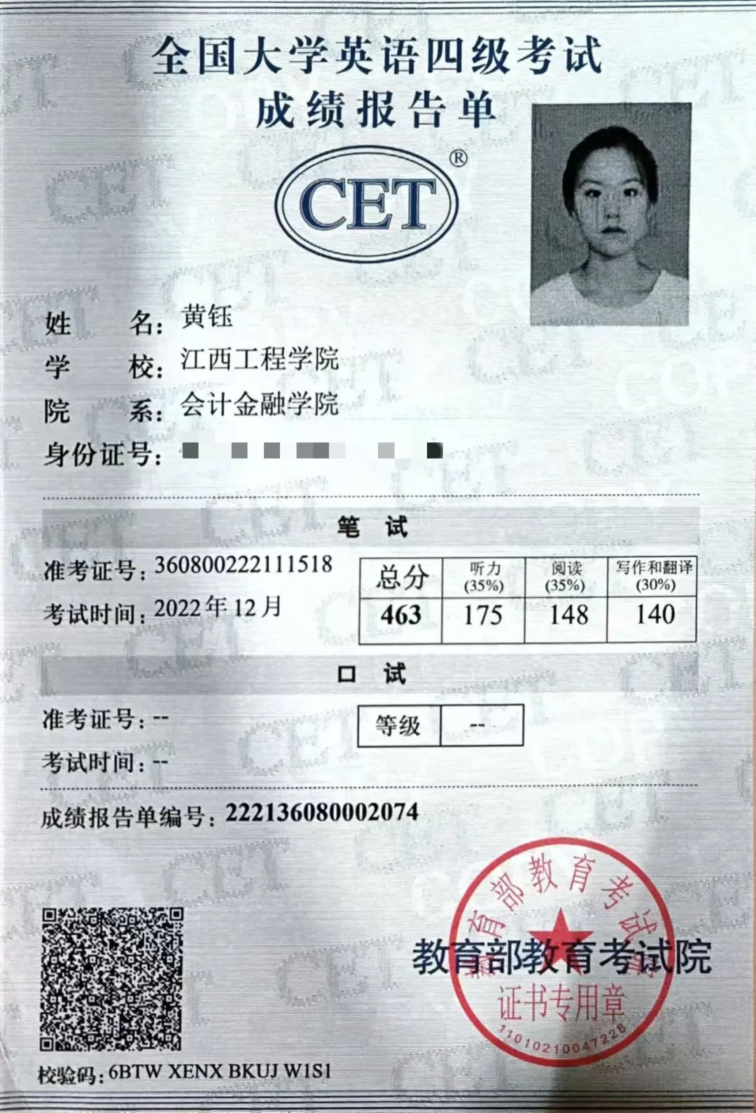黄钰,河南省南阳人,群众,就读于SUNBET申博2021级财务管理本科4班。