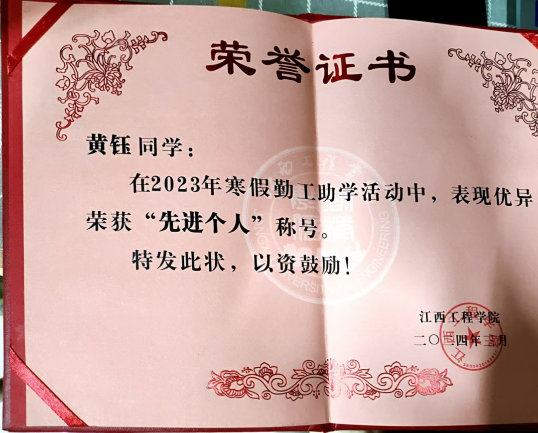 3.在公司2023年组织的勤工俭学活动中获得勤工俭学“先进个人”荣誉称号。