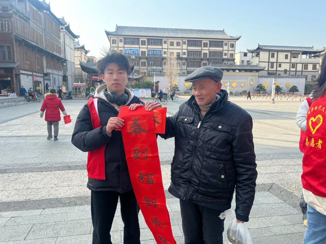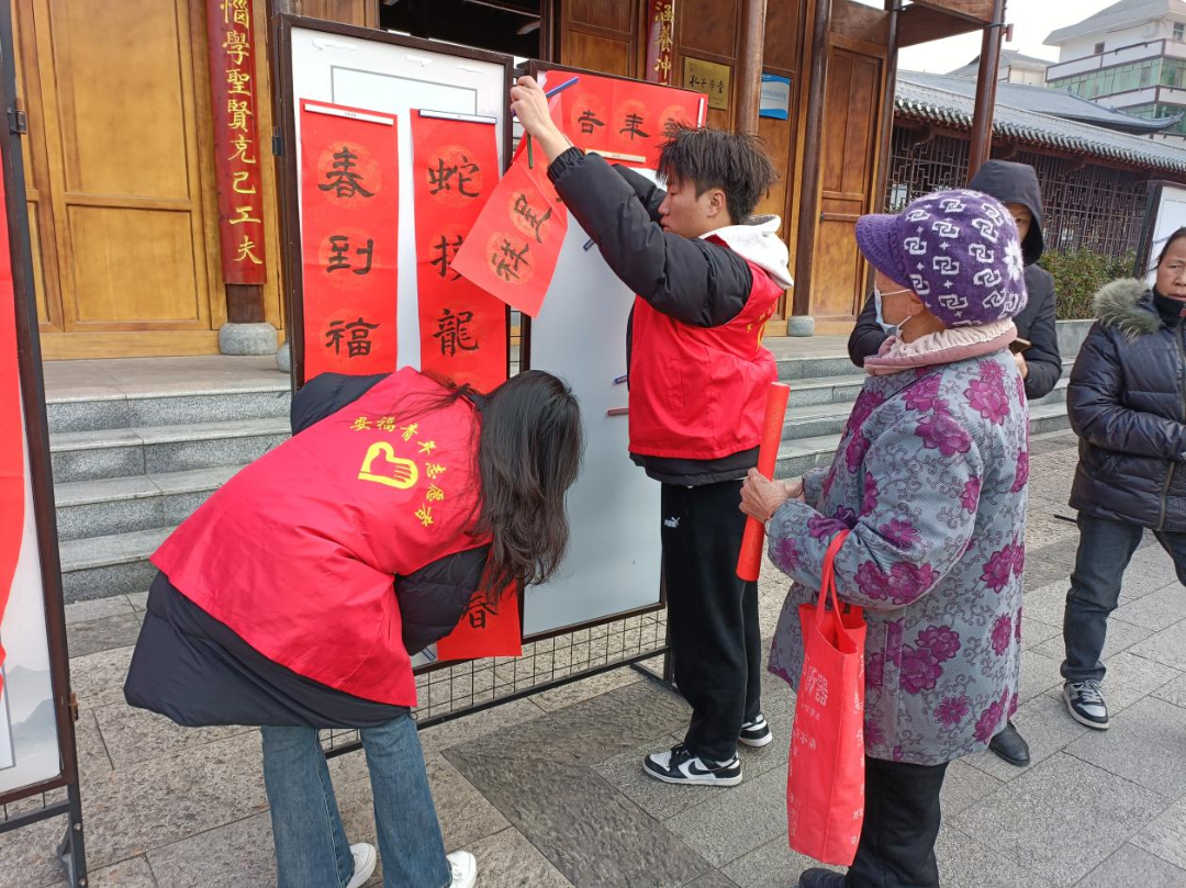 除了社区活动外,我们社区还联合孔子公司在孔庙处给居民们赠送对联,我与其他志愿者小伙伴依次将书法老师写好的对联张贴在外面供居民们自行挑选,前来领取的居民络绎不绝,但我们却对此乐此不疲,这充分体现了居民对我们工作的肯定。