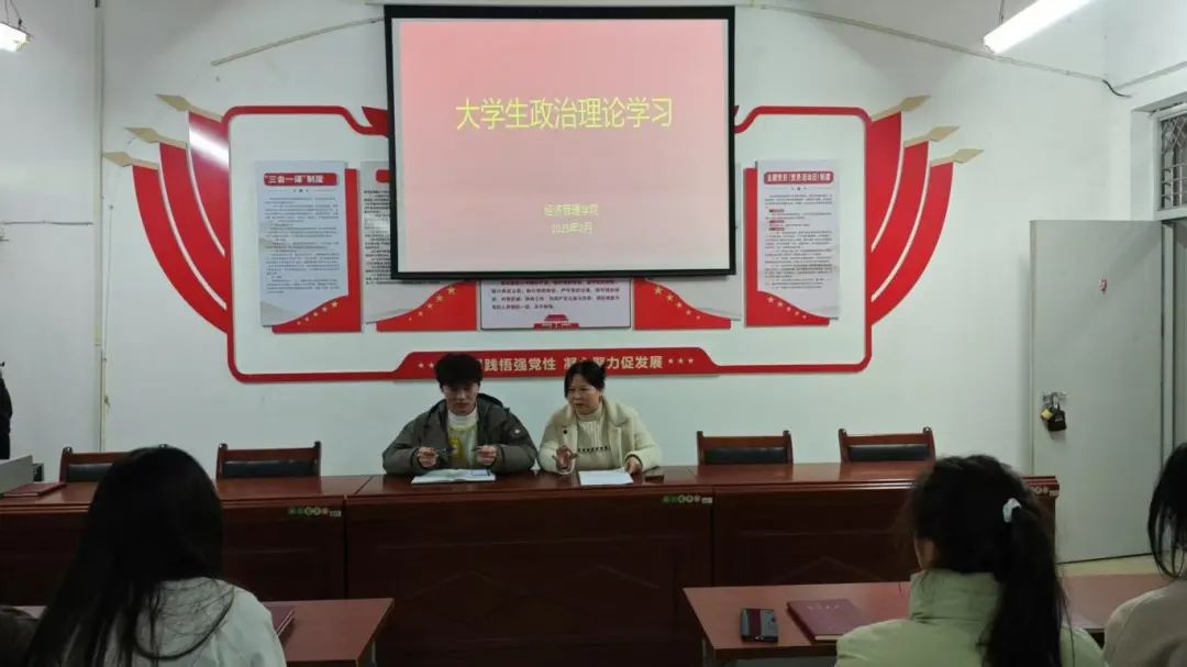 接着团总支书记陈鹏表示,经济管理学科与国家经济发展息息相关,同学们在学习专业知识的过程中,要善于运用政治理论的思维和方法,将所学知识运用到实际中,在实践中锻炼自己的能力,提升自己的政治觉悟和社会责任感。