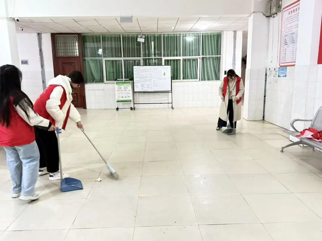 在清扫走廊地面时,志愿者们弯下腰,认真地将灰尘、杂物一点点清扫干净,对于一些难以清理的污渍,他们蹲下身来,用刷子仔细地刷洗。擦拭楼梯扶手的志愿者们,不放过任何一处角落,从上到下,一遍又一遍地擦拭,使扶手光洁如新。面对宿舍楼栋的卫生死角,如天花板、墙角等,志愿者们毫不退缩,或趴着、或用长扫帚、抹布将积累的灰尘和杂物彻底清除。