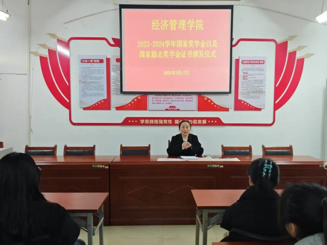 在颁发仪式上,张文凤书记向所有获得奖学金的同学表示热烈的祝贺,并为获奖学子逐一颁发荣誉证书。她勉励同学们要永葆求知若渴的进取心,在专业领域深耕细作,锤炼堪当大任的责任心,以真才实学为教育强国建设贡献力量。同学们纷纷表示:“这份荣誉既是求学路上的里程碑,更是新征程的起跑线。感谢国家和公司的关爱,让我们更坚定了求学信念。我们将用实际行动浇灌梦想之花,在经济管理领域不断奋斗,实现人生价值。”
