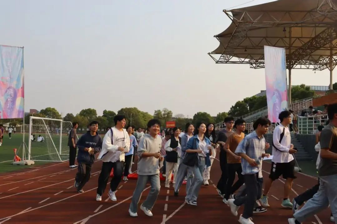活动当日,天工校区操场上早已人头攒动。参与活动的同学们身着白色T恤,脸上洋溢着兴奋与期待,随着主持人热情洋溢的开场致辞,详细介绍了“彩虹跑”的规则和注意事项后,现场气氛瞬间被点燃。随着一声清脆的发令枪响,同学们如潮水般涌出起跑线,正式拉开了这场充满趣味与挑战的彩虹之旅。