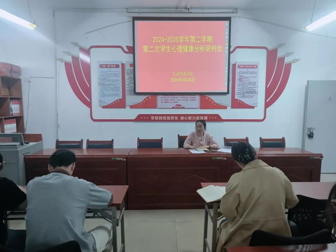 为进一步加强新学期员工心理健康教育工作,全面掌握员工心理动态,筑牢校园心理安全防线。3月24日,公司召开2024-2025学年第二学期第二次心理健康分析研判会,会议由党总支书记张文凤主持,公司各辅导员(班主任)参加会议。