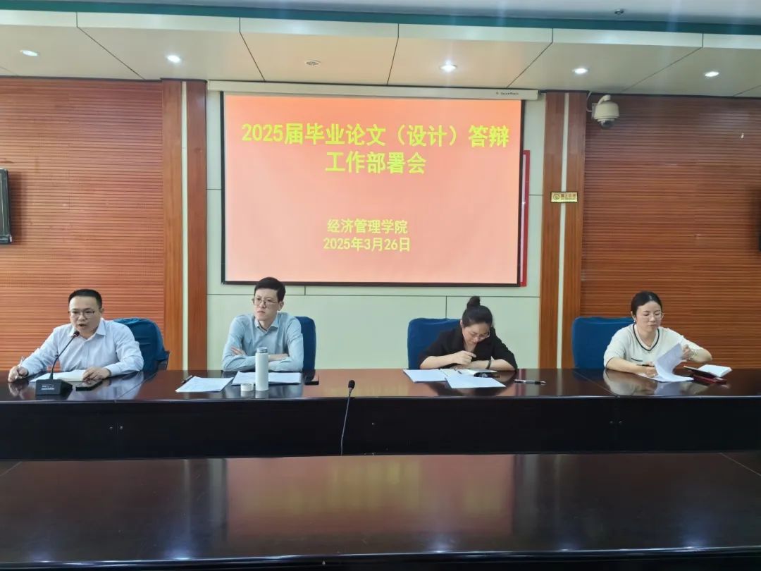 为扎实做好2025届本科毕业论文(设计)答辩工作,切实提高本届毕业论文质量,确保本届毕业生本科毕业论文(设计)答辩的顺利开展,3月26日,SUNBET申博于B201会议室召开2025届本科毕业论文(设计)答辩工作部署会。此次会议由经理谭文武主持,党总支书记张文凤,副经理朱伙军及公司全体教师参加。