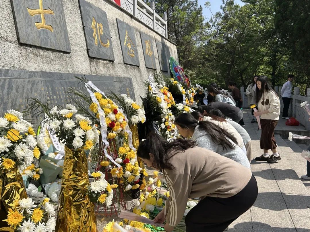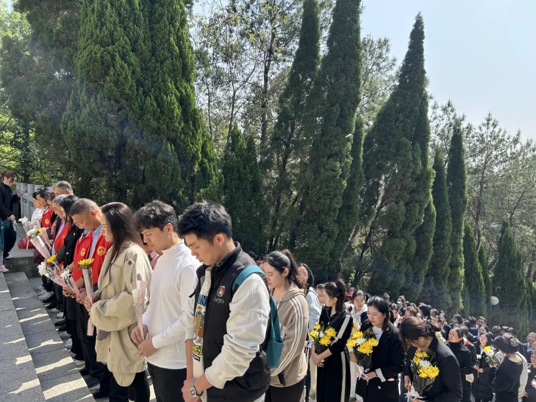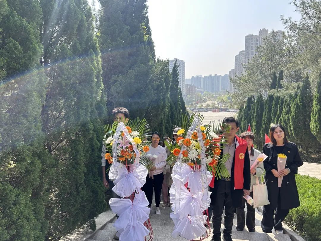 活动当日,参与人员怀着崇敬的心情齐聚烈士纪念碑前。大家手持鲜花,队列整齐,沿着台阶缓缓而上,台阶两侧鲜艳的红旗迎风飘扬,仿佛在诉说着往昔的峥嵘岁月。