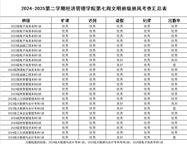 希望表现优秀的班级能够再接再厉,继续保持良好的状态。同时,部分班级也需要加以改进,以提升整体的班级班风水平。我们期待所有班级都能够积极行动起来,为营造一个更加文明、整洁、有序的学习环境而努力。