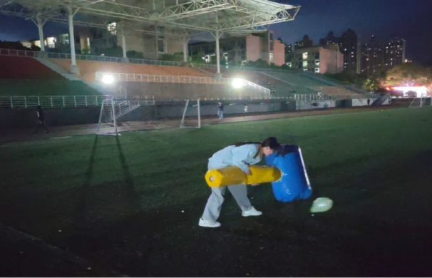 活动伊始,同学们热情高涨地来到操场集合。在组织者的引导下,大家迅速分成小组,为接下来的趣味游戏做好准备。首先开展的是锤子锤气球游戏。每个小组的成员依次拿着锤子,在规定时间内尽力锤破更多的气球。现场气氛瞬间被点燃,“砰砰”的气球爆破声与同学们的欢呼声交织在一起。大家全神贯注,相互加油打气,不仅锻炼了反应能力,还在竞争中培养了团队协作意识。