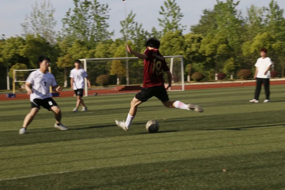 赛场热浪随着比赛进程不断攀升。前锋凌厉突破时的呐喊,后卫飞身堵截时的汗水,守门员腾空扑救的矫健身姿,交织成青春最动人的画面。场边师生自发组成的助威方阵以整齐划一的口号声为健儿们注入力量,后勤团队穿梭忙碌的身影更让竞技场上流淌着温暖的底色。