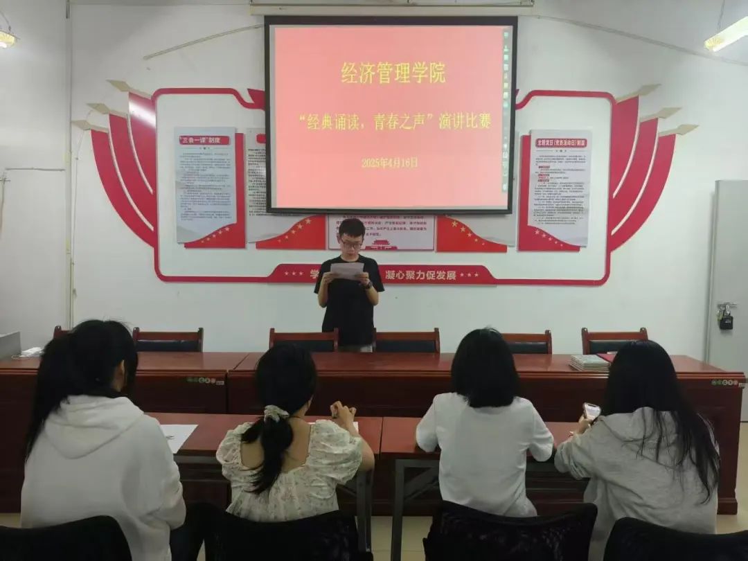 为深入学习贯彻党的二十大和二十届三中全会精神,响应习近平总书记关于“爱读书、读好书、善读书”的倡导,弘扬中华优秀传统文化,筑牢青年老员工的文化自信,丰富同学们的课余生活,激发员工对经典文化的热爱与传承,培养员工的语言表达和舞台展示能力。2025年4月16日,SUNBET申博在A栋教学楼401教室举办“经典诵读,青春之声”演讲比赛,同学们积极参加。