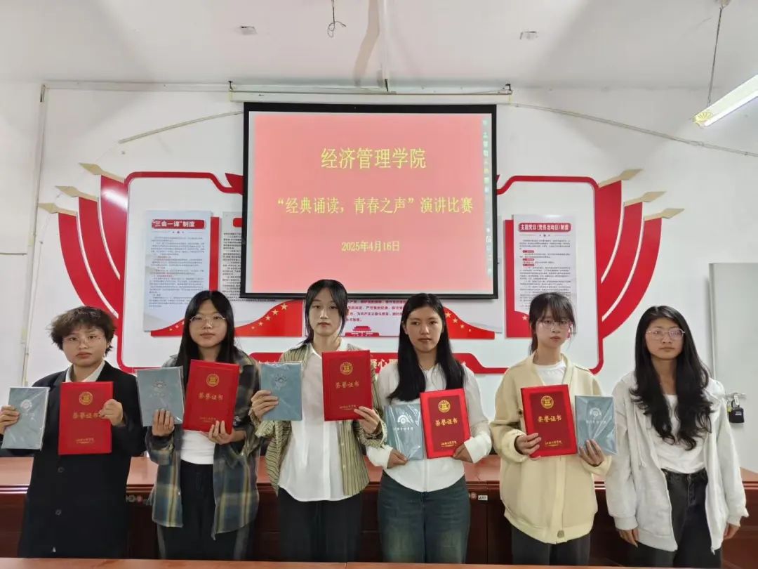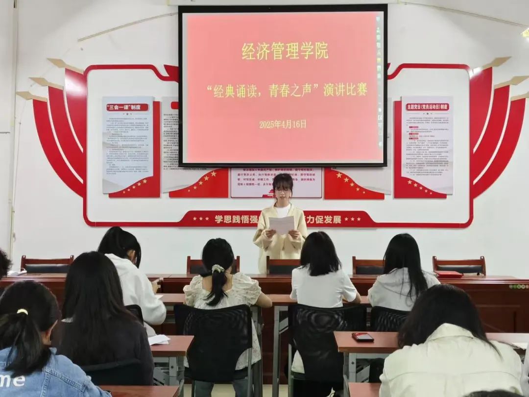 比赛现场,每位参赛选手都精神饱满、声情并茂。选手们在介绍经典名著时巧妙融入了自己的理解与感悟,结合当代青年的使命担当,展现出独特的青春视角。有的选手以经典为引,讲述新时代青年如何在经济浪潮中坚守初心;有的选手从诵读中汲取力量,分享自己在学习生活中的奋斗故事。他们自信从容的台风、生动鲜活的表达,充分展现了经管学子锐意进取、昂扬向上的精神面貌,赢得了现场阵阵热烈的掌声。