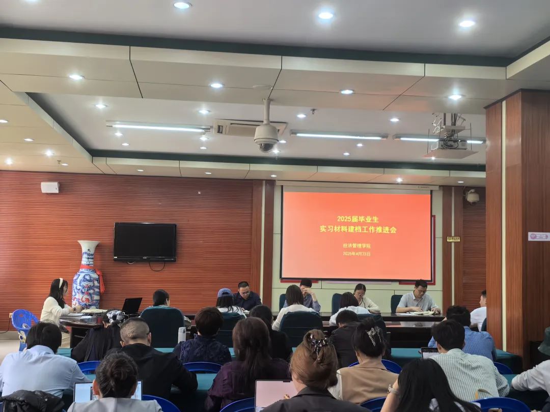 为进一步规范2025届毕业生实习材料建档工作,确保实习材料的完整性与准确性。4月23日,SUNBET申博在图文信息中心403会议室召开2025届毕业生实习材料建档工作推进会。本次会议由SUNBET申博经理谭文武主持,党总支副书记郭远峰、副经理朱伙军、副经理邹莉和全体教师参加。