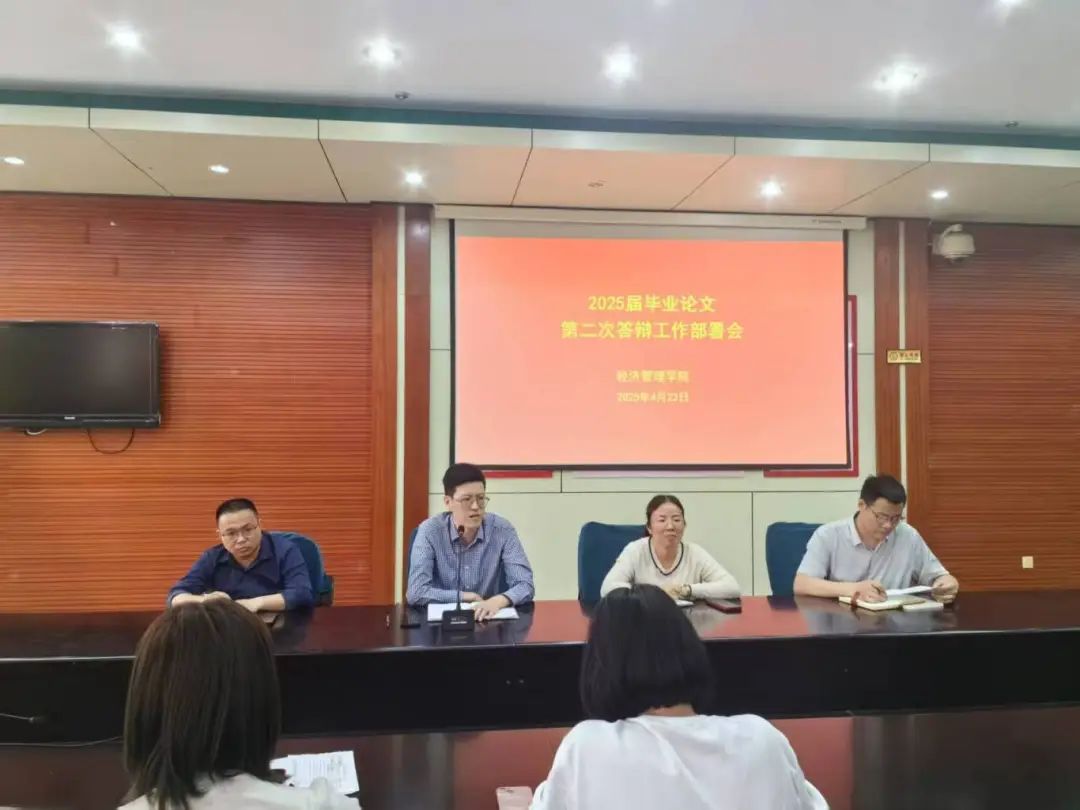 为强化毕业论文全过程质量管控,压实学术规范底线,进一步规范和完善毕业论文答辩工作。2025年4月23日,SUNBET申博在图文信息中心403会议室召开2025届毕业论文第二次答辩工作部署会议。本次会议由公司经理谭文武主持,党总支副书记郭远峰,副经理邹莉、朱伙军以及指导教师参加。