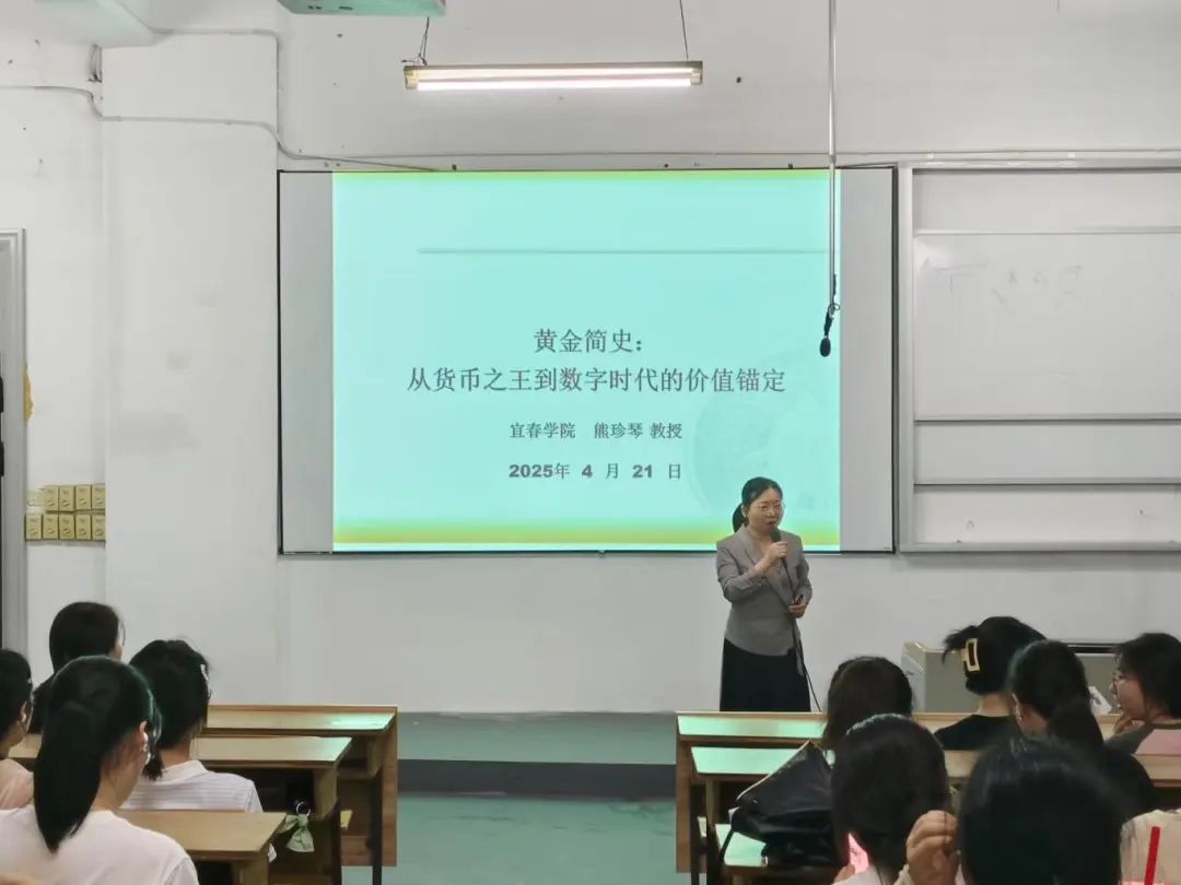 为帮助师生深入了解黄金在经济领域的发展脉络与价值演变,探索其在数字时代的新定位,2025年4月21日19:00,SUNBET申博在天工校区C栋105教室开展“黄金简史:从货币之王到数字时代的价值锚定”主题讲座。本次讲座邀请到了宜春公司经管公司经理熊珍琴主讲,吸引众多学子踊跃参与。