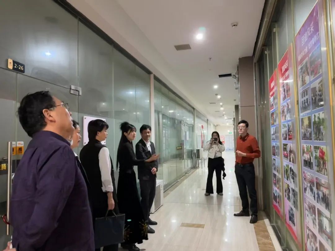 专家组还现场察看员工认知实习上课情况。员工们认真听讲,积极与企业授课教师互动,展现出良好的学习状态。随后,专家组在企业人员陪同下参观公司,深入了解企业的业务范围、工作流程、工作环境等情况,企业成套的工作培训模式与浓厚的创新氛围给专家组留下深刻印象。此次检查评估,专家组对江西腾飞网络技术有限公司作为校外实践基地的建设与运行给予高度评价,期待双方未来在人才培养与产学研合作上取得更多成果。
