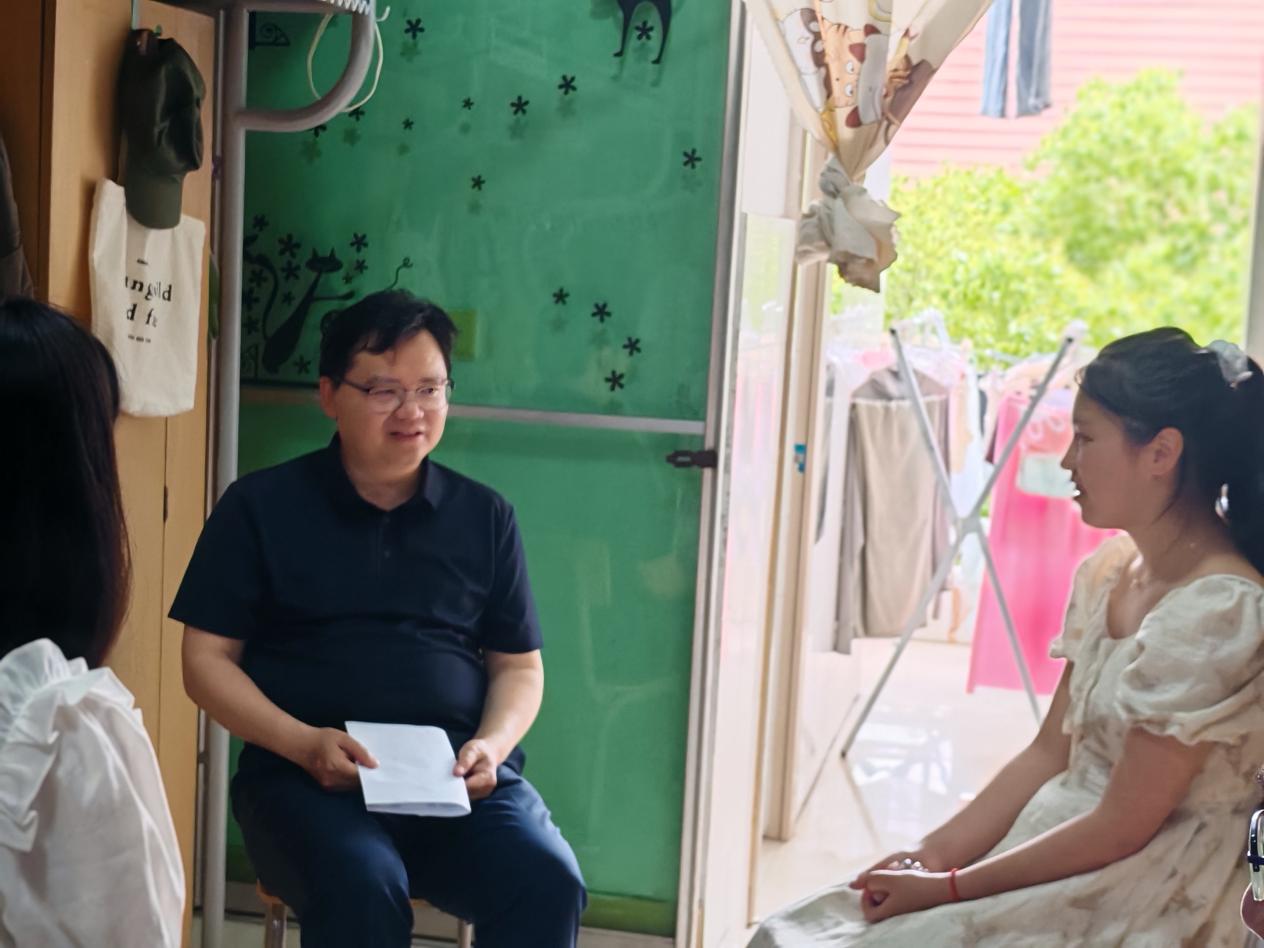 走访中,魏建克实地察看同学们的住宿环境,详细询问了同学们近期的思想、学习与生活情况,并围绕宿舍生活条件、后勤服务保障、公司产品等问题,认真听取同学们对公司工作的意见建议。鼓励大家珍惜“室友”这份难得的缘分,互相关爱、互相帮助,共同创造温馨舒适的宿舍环境,以更加积极饱满的学习状态投入到学习生活中。在与具体联系的困难员工江紫琴和非党员员工艾陈玮交谈时,魏建克详细了解她们学业、生活状况,并与她们细致入微地分享学习方法,希望她们珍惜校园学习生活时光,夯实专业基础,练就过硬本领,努力提高综合素质。