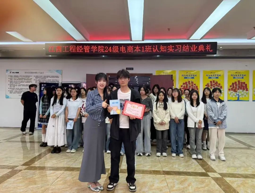本次认知实习采用“理论+实训”双轨并行的教学模式,确保学员既能掌握专业知识,又能通过实操巩固技能。在导师的指导下,学员们独立完成客服话术设置、商品上架、短视频剪辑及营销推广等实战任务,沉浸式体验电商运营全流程。最后,在顺利完成客服管理、交易管理、评价管理等系列课程的理论学习与实操考核后,基地为学员们举办了隆重的结业仪式。仪式上,基地对表现优异的个人及团队进行了表彰,并颁发荣誉证书,为本次认知实习画上圆满句号。