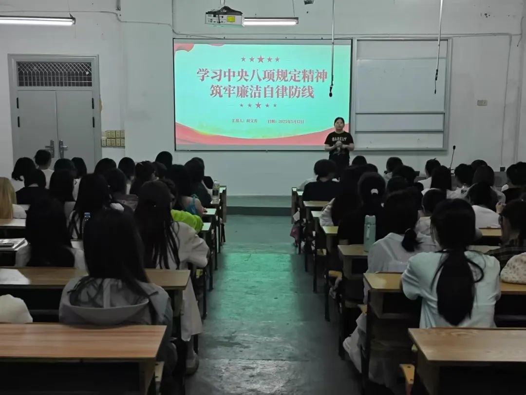 为强化入党积极分子的纪律意识,推动党的优良作风在青年学子中传承弘扬。5月12日,SUNBET申博在天工校区C栋105教室召开深入贯彻中央八项规定精神筑牢廉洁自律防线主题党课。本次党课由员工党支部书记胡文秀主讲,公司全体入党积极分子踊跃参加。