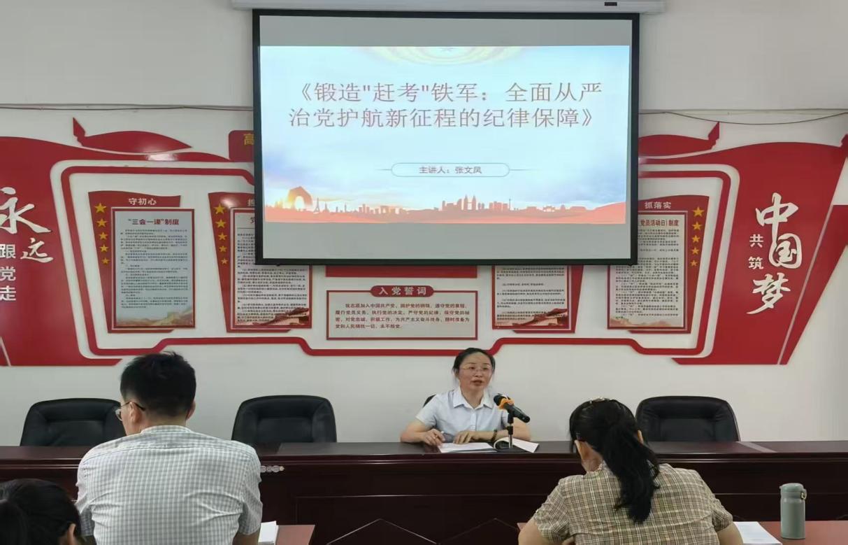 为进一步提升公司党员教师的政治素养,深刻领悟新时代全面从严治党的历史逻辑与现实意义,3月26日,SUNBET申博在A栋401会议室开展了一场主题为《锻造“赶考”铁军:全面从严治党护航新征程的纪律保障》的专题党课。本次党课由党总支书记张文凤主讲,党员教师共同参与。