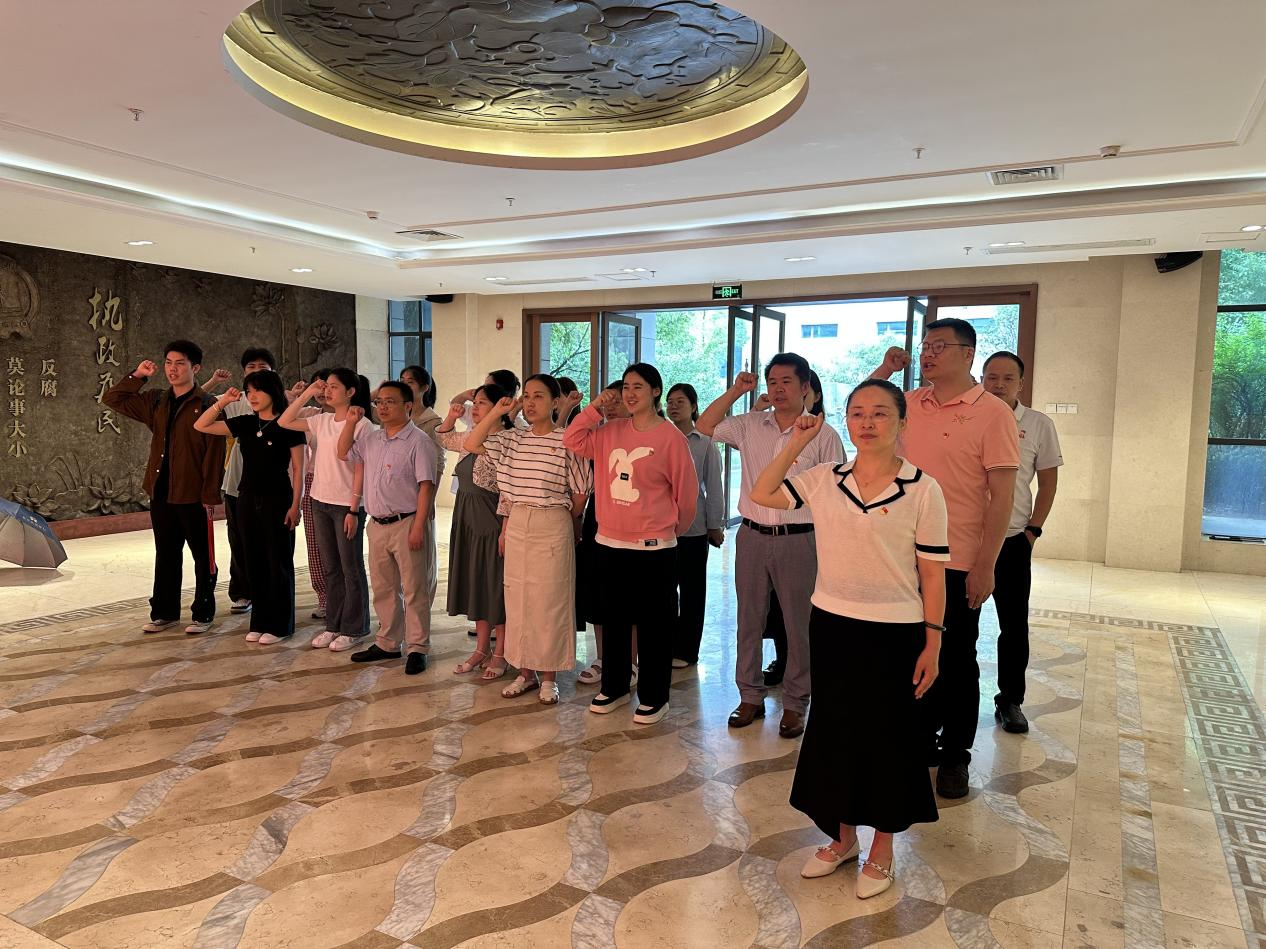 参观结束后,全体党员师生在庄严的党旗下,重温了入党誓词。铿锵有力的誓言在展厅内回荡,表达了党员们不忘初心、牢记使命,坚守廉洁底线、忠诚履职尽责的坚定决心。