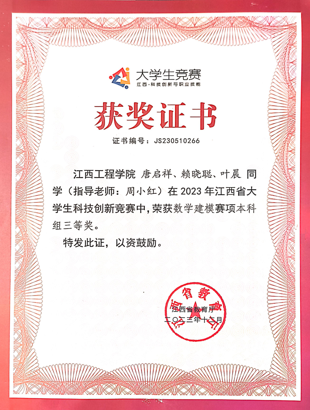 除了专注于学习,唐启祥还积极参与各类校园活动。在数学建模竞赛中,他与队友们并肩作战,日夜钻研。面对复杂的数学模型和海量的数据,他们没有丝毫退缩。在无数次的讨论、尝试与失败之后,他们终于找到了解决问题的方法,成功完成了竞赛任务。这段经历不仅提升了他的专业技能,更培养了他严谨的逻辑思维和解决问题的能力。社团活动则让他结识了许多志同道合的朋友,他们一起组织活动、交流想法,在团队协作中共同成长。志愿服务活动中,他走进社区、公司,为他人送去温暖与帮助。在这个过程中,他深刻体会到了奉献的快乐,也锻炼了自己的沟通能力和社会责任感。