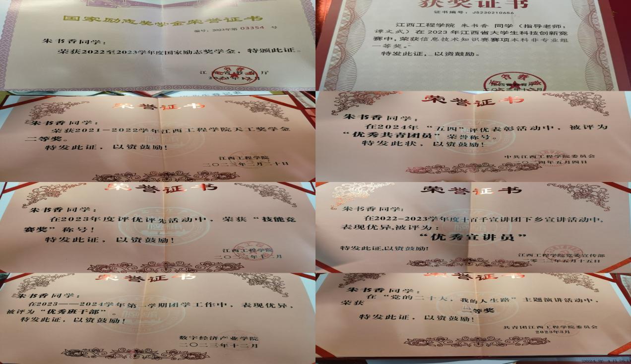 作为班级助学金负责人,我学会了在繁琐表格间搭建沟通的桥梁;校广播站摄影部的工作,让我懂得用镜头定格晨读时穿透薄雾的朝霞;而那些站在朗诵比赛舞台上的夜晚,则让我触摸到语言的力量。当连续两年捧起国家励志奖学金证书,当江西省信息技术大赛一等奖的奖杯折射出虹光,我忽然明白:真正的优秀不是单维度的比拼,而是让每个独特的灵魂都在集体中找到绽放的坐标。
