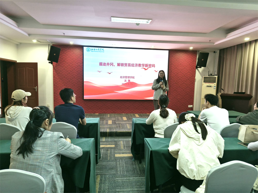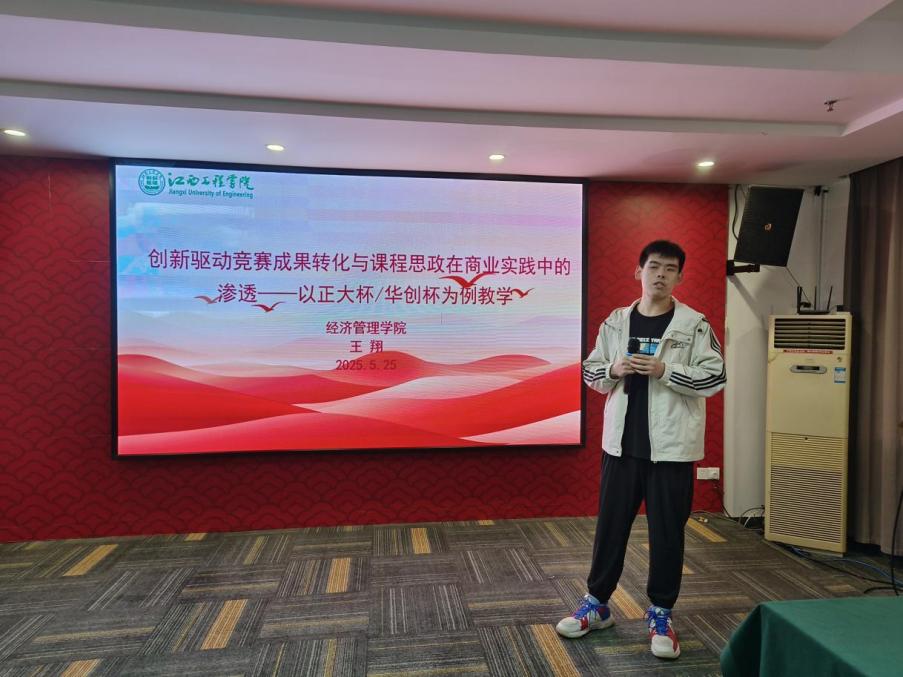 贸易经济教研室的吴飘老师以《循迹井冈,解锁贸易经济教学新密码》为题,深入结合井冈山红色贸易历史,深度挖掘专业课程中的实践教学资源。她的分享让教师们认识到,红色历史中蕴含着丰富的教学素材,能够为贸易经济教学注入新的活力。王翔老师通过《创新驱动竞赛成果转化与课程思政在商业实践中的渗透—以正大杯/华创杯为例》,分享了学科竞赛与课程思政融合的实战经验。他强调通过真实商业场景的模拟与实践,能够有效培养员工的创新思维与社会责任感,实现知识传授与价值塑造的有机统一。