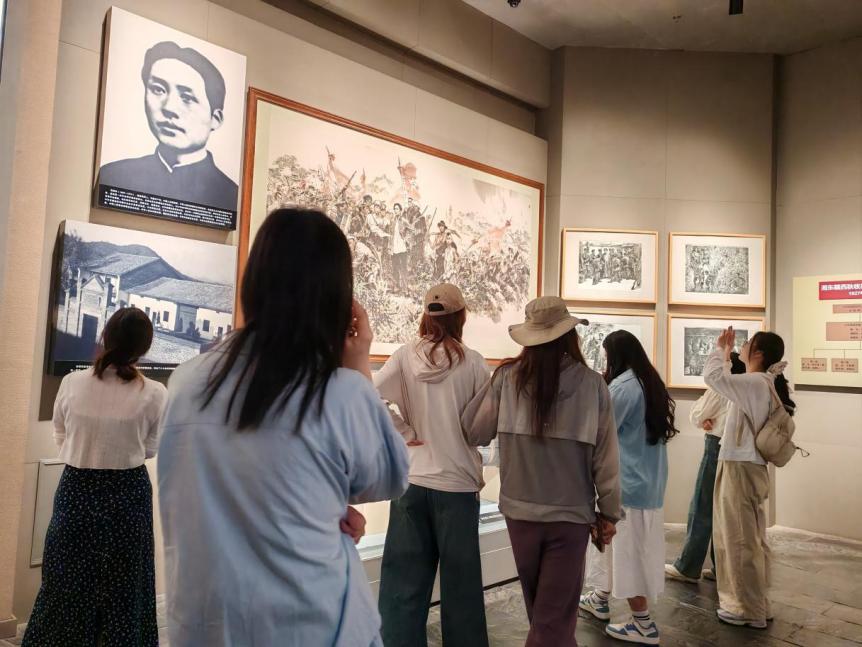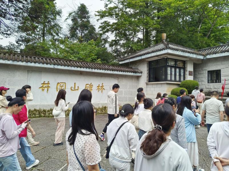 总结会后,全体教师开启沉浸式“行走的思政教研”之旅。在井冈山博物馆,泛黄的革命文献、锈迹斑斑的武器与粗布军装,搭配场景复原与多媒体技术,全景重现井冈山革命根据地创建历程,教师们从中汲取先辈在艰难环境中坚守信念、发展经济的智慧,为课程思政积累生动素材。井冈山烈士陵园,众人庄严肃立,向纪念碑敬献花篮、默哀鞠躬,绕行瞻仰15744名烈士英名墙,聆听“马前托孤”“舍身护粮”等故事,思索如何在课堂传递信仰力量。走进王佐故居,听王佐后辈站在祖居堂屋前,深情讲述先辈从绿林好汉成长为革命先驱的传奇故事:组织农民武装、带领群众发展生产、组建挑粮队保障军需……这些鲜活事迹不仅勾勒出王佐跌宕起伏的革命生涯,更为经管专业教师提供了课程思政新思路。一位贸易经济教研室教师感慨:“王佐在物资调配中展现的智慧与担当,正是引导员工理解商业社会责任的绝佳案例。” 这场行走的思政教研,让红色精神与专业教学深度交融,为育人实践注入新动能。
