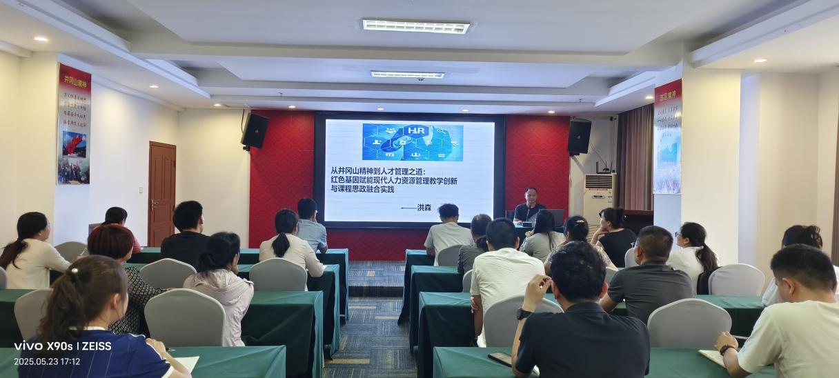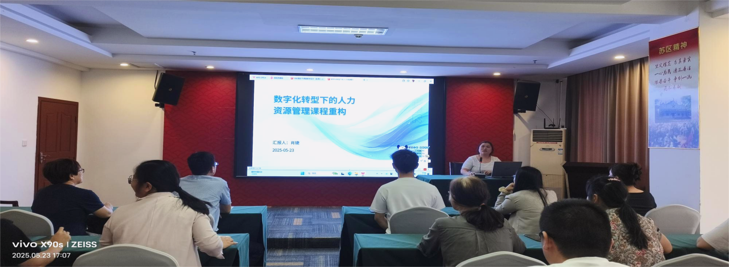 人力资源管理教研室精彩分享同样不断。肖婕老师聚焦当下数字化转型的时代趋势,分享了《数字化转型下的人力资源管理课程重构》。她提出借助先进的数字工具,能够有效提升课程的实效性与吸引力,使人力资源管理课程更好地适应时代发展需求。洪森老师另辟蹊径,以井冈山精神为切入点,带来了《从井冈山精神到人才管理之道:红色基因赋能现代人力资源管理教学创新与课程思政融合实践》。通过将 “艰苦奋斗”“群众路线” 等经典红色基因与现代人才管理理论有机结合,为教学创新提供了极具创新性的思路,让古老的红色智慧在现代教学中焕发出新的活力。谢心欣老师主持的《数字 HR 技能竞赛设计与实施研讨会》,则以竞赛为有力抓手,深入探讨了 “以赛促学” 的教学模式创新。通过竞赛的形式,激发员工的学习积极性与主动性,培养员工的实践能力与团队协作精神。