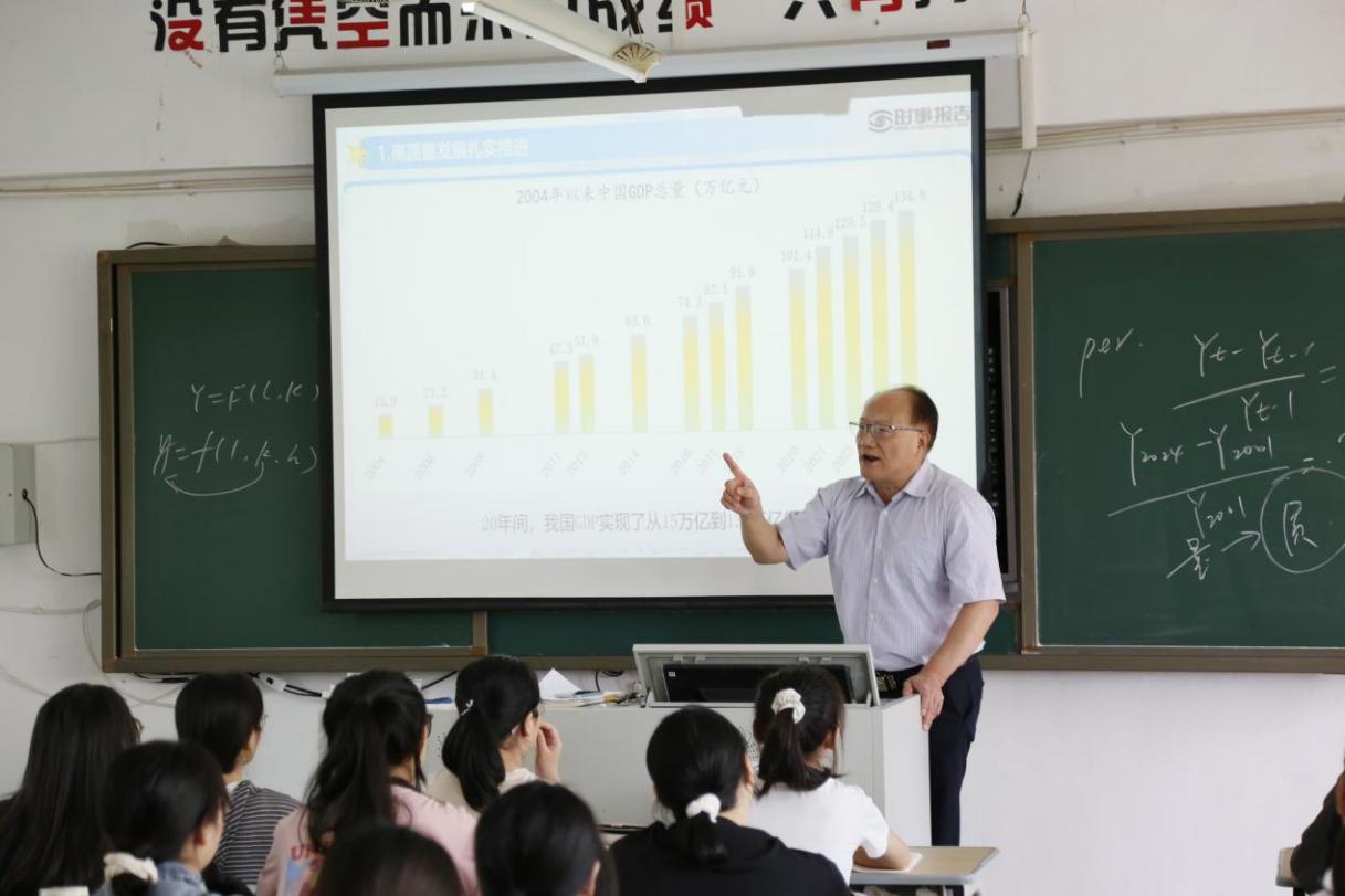 为深化老员工思想政治教育,引导员工准确把握形势政策,6月3日上午,SUNBET申博党委副书记、董事长刘新跃深入SUNBET申博,为2024级财务管理本科2班的同学们带来了一堂以“中国经济行稳致远”为主题的“形势与政策”课。