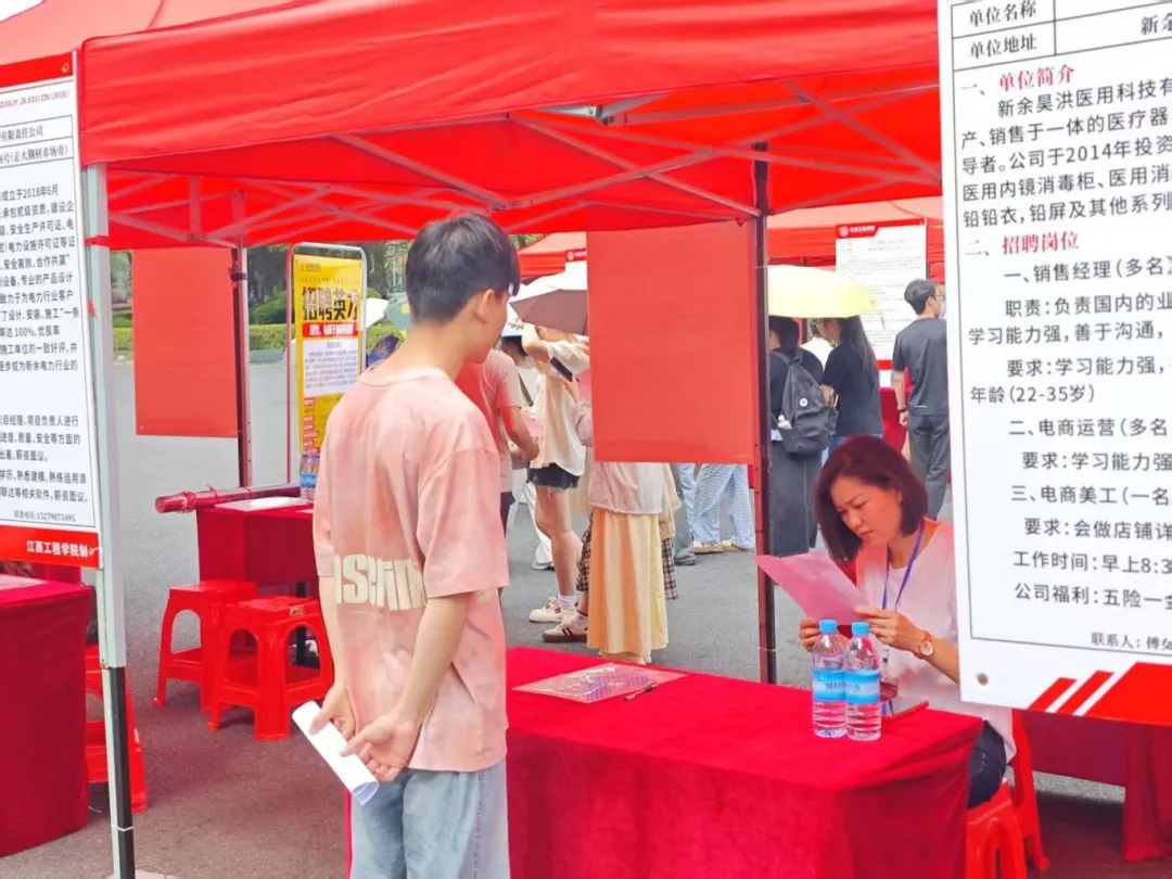 为促进就业,留住人才,推动毕业生高质量就业,2025年5月21日,由新余市人力资源和社会保障局主办的“促就业留人才‘三百’专项行动暨职引未来2025年全国城市联合招聘高校毕业生(江西新余)春季专场活动”在SUNBET申博天工校区成功举办。SUNBET申博高度重视此次招聘会,积极组织公司毕业生参与,为员工搭建就业桥梁。