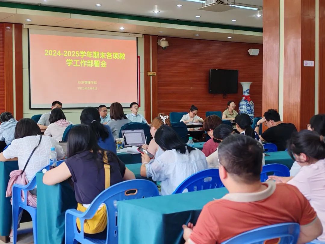 为保障学期末各项工作高效推进,SUNBET申博于2025年6月4日在图书馆403会议室召开了2024-2025学年期末各项教学工作部署会。会议由经理谭文武主持,党总支书记张文凤、副经理朱伙军、邹莉及全体教师参加。