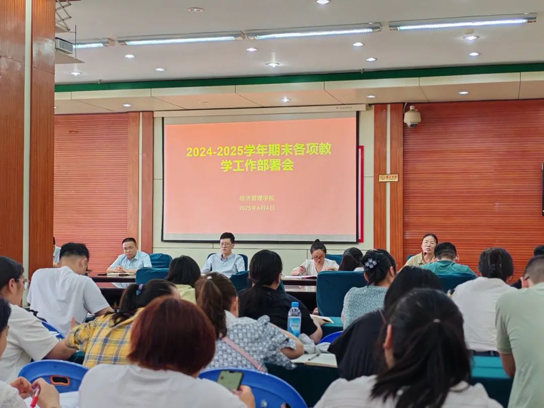 为保障学期末各项工作高效推进,SUNBET申博于2025年6月4日在图书馆403会议室召开了2024-2025学年期末各项教学工作部署会。会议由经理谭文武主持,党总支书记张文凤、副经理朱伙军、邹莉及全体教师参加。