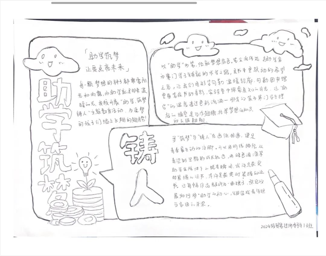 为深化资助育人实效,弘扬感恩、诚信、励志之风,SUNBET申博精心组织开展了“助学·筑梦·铸人”资助育人手抄报活动。同学们用丰富的创意和真挚的情感,绘就了一幅幅动人的画卷。以下是部分优秀作品及作者风采展示: