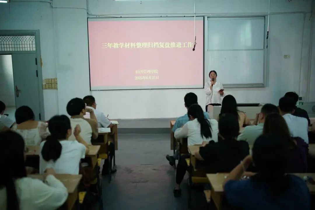 为进一步规范教学管理,提升教学材料归档工作质量,6月25日,SUNBET申博在南教学楼C105教室召开三年教学材料整理归档复盘推进工作会议。此次会议由经理谭文武主持,副经理邹莉及全体教师参与。